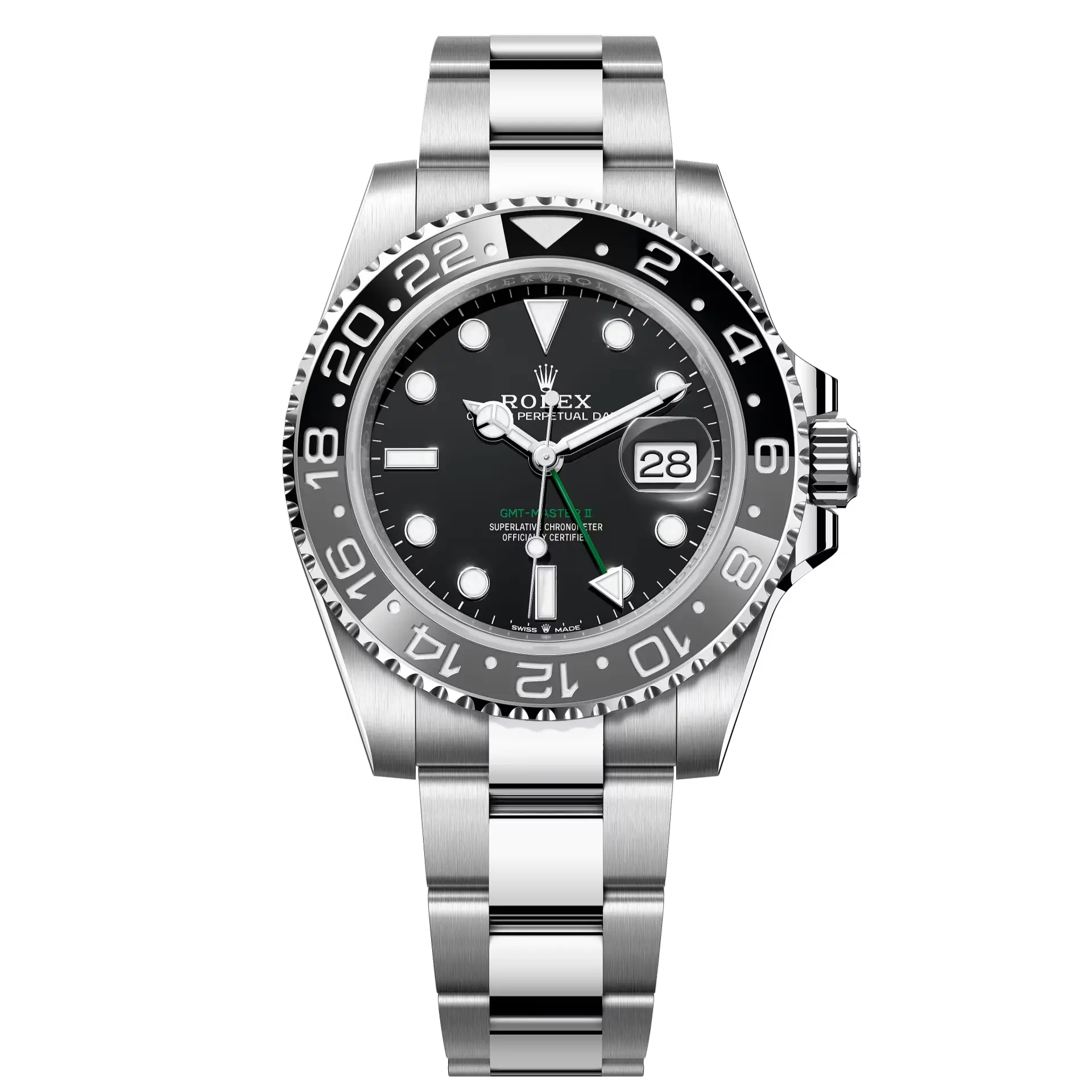 Its all-black Cerachrom bezel creates a refined monochrome aesthetic, while still providing the practical function of tracking two time zones—perfect for those who value discretion and performance.