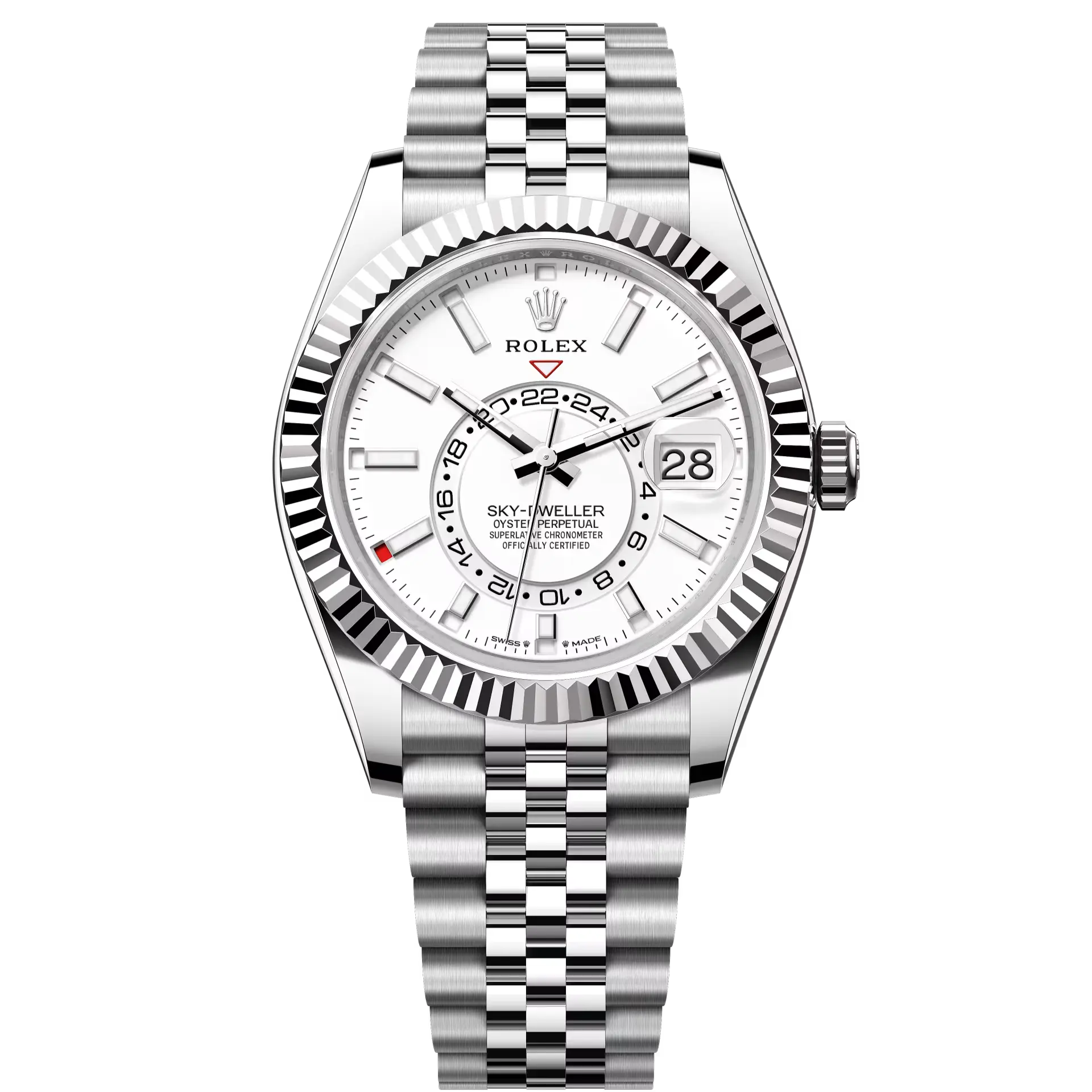 Sky-Dweller in Oystersteel and white gold with an intense white dial and a Jubilee bracelet.